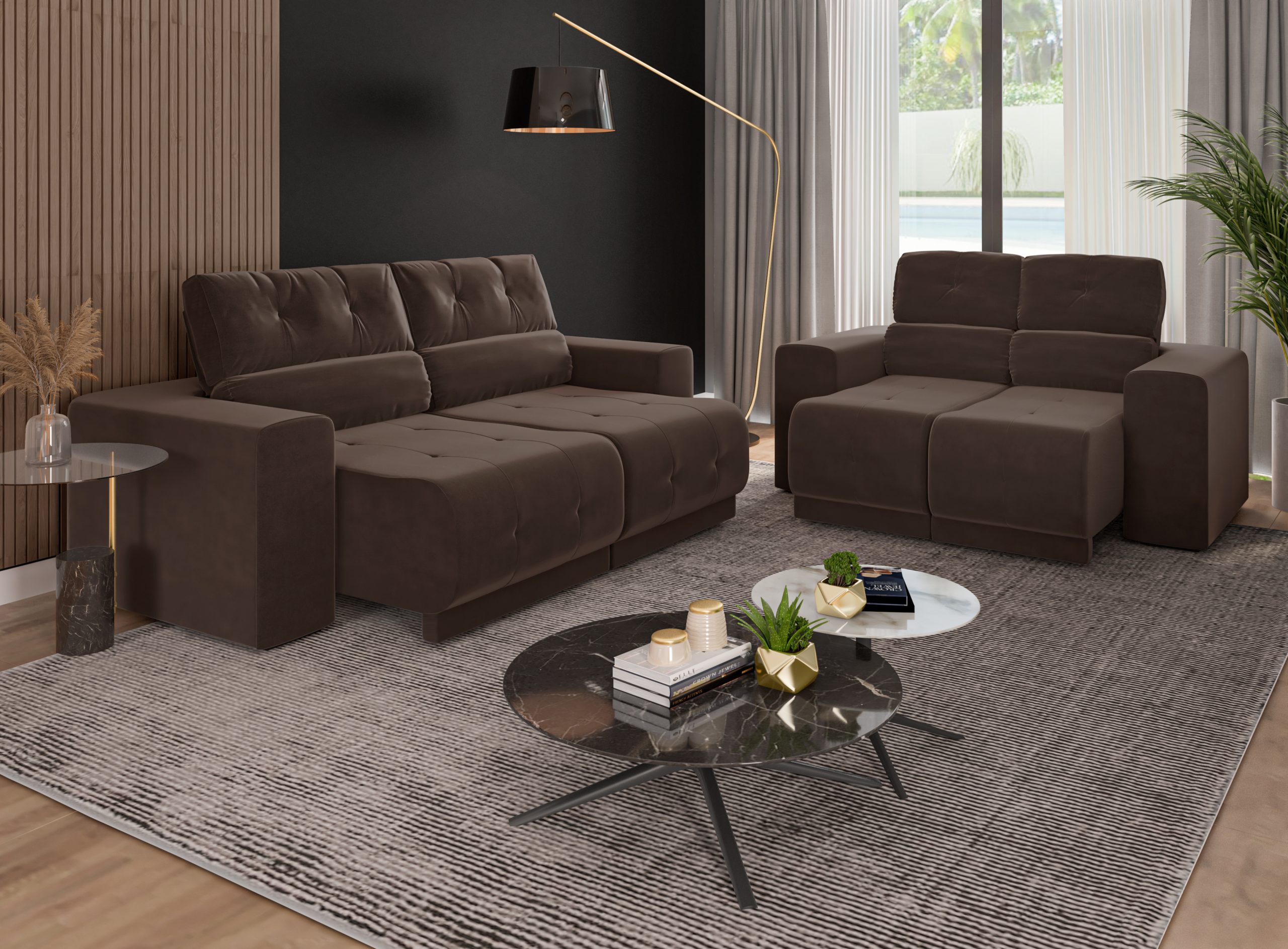Salvador – Ref. 3080Especificações Tabaco – 3 e 2 Lugares 2 Lugares – Cinza, Choco e Tabaco Gostou do que viu? Leve nossos produtos para a sua loja! Atendimento Online